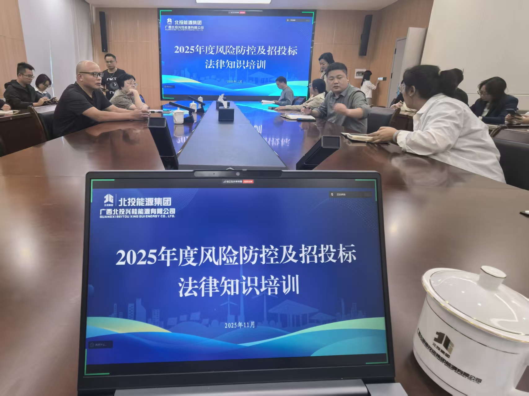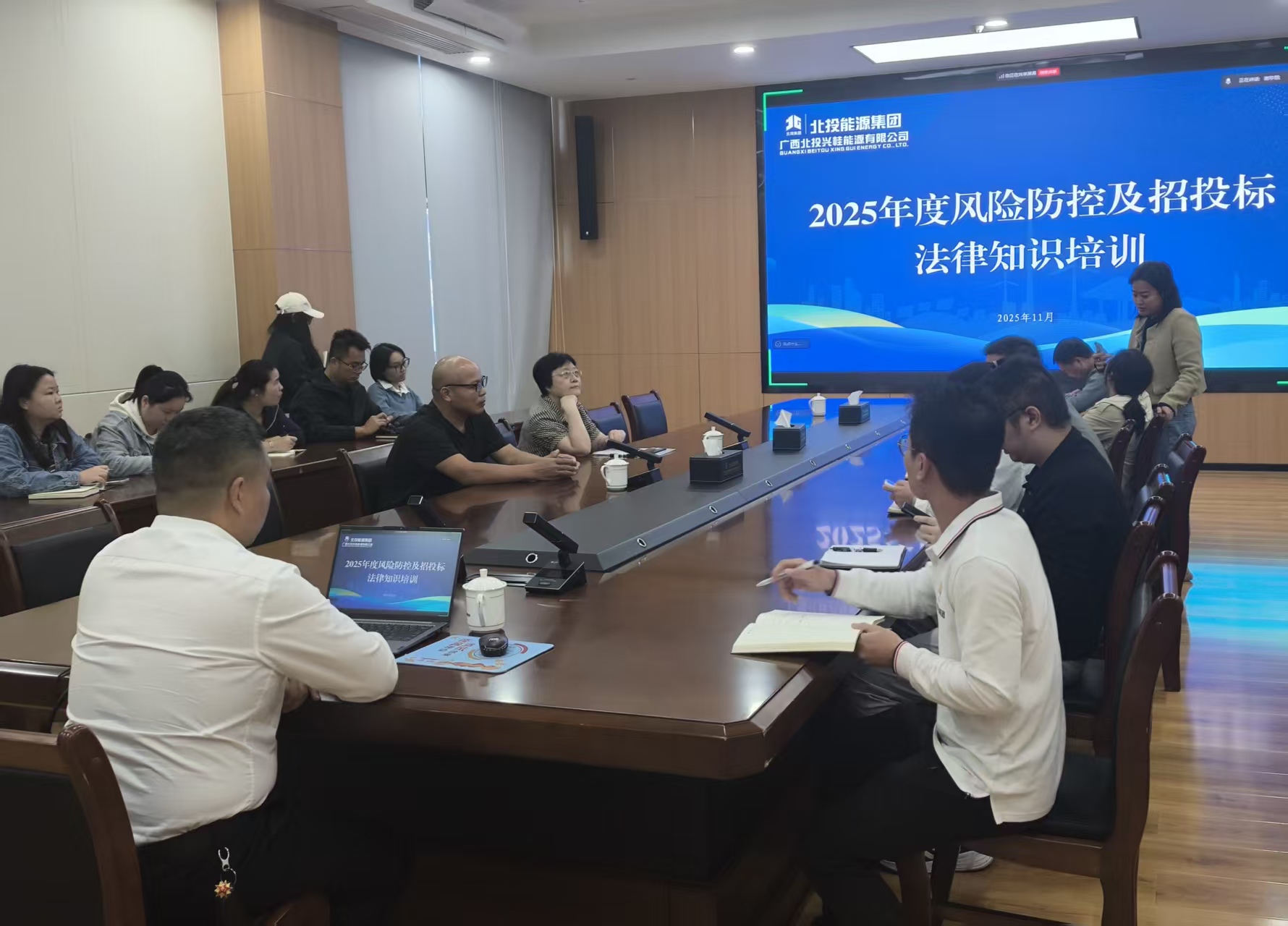 受广西北部湾投资集团下属广西北投兴桂能源有限公司邀请,11月13日,广西众鑫公司总经理蒙清潭于广西能源大厦C座会议室,为其员工进行了一场招投标法律法规专题培训。