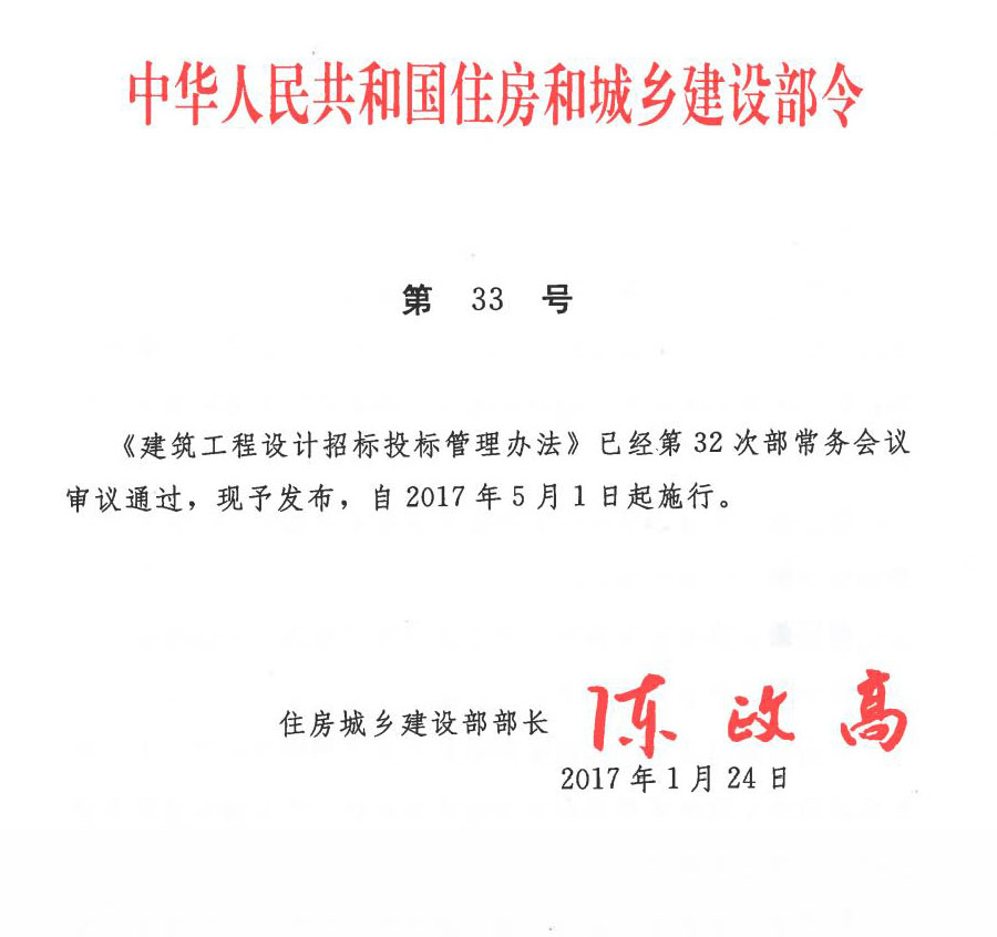 中华人民共和国住房和城乡建设部令第33号-建筑工程设计招标投标管理办法